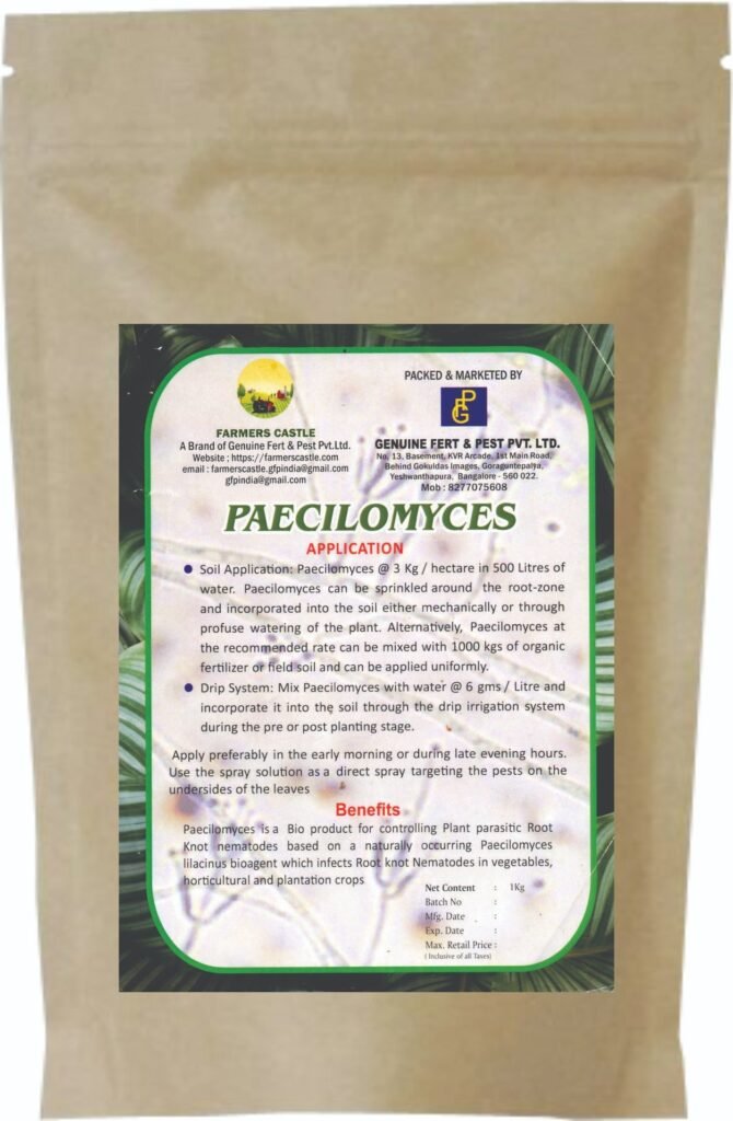 Paecilomyces is a Bio product for controlling plant root knot nematodes based on a naturally paecilomyces lilacinus bioagent which infects ro nematodes in vegetables, horticultural and plantatic